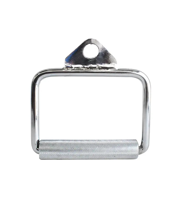Material: Acero macizo con cobertura cromada Agarre giratorio para hacer los ejercicios con poleas.