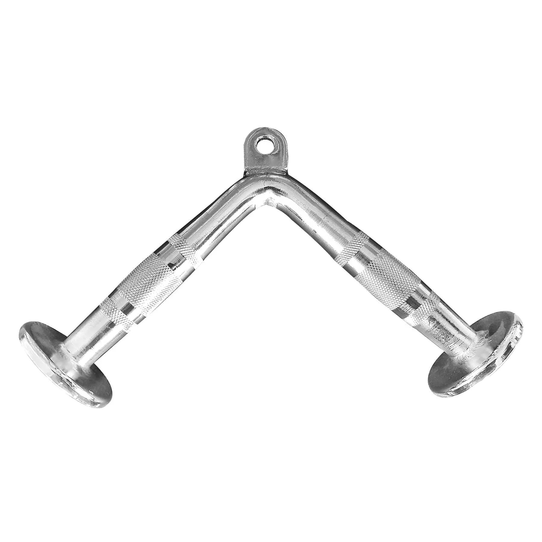 Material: Acero macizo con cobertura cromada Forma V con topes para tríceps adecuado para todos los sistemas de cable