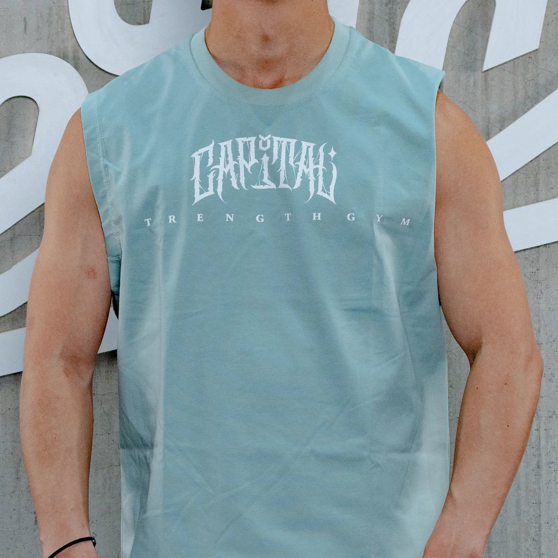 PLAYERA CAPITAL STRENGTH GOTICA SIN MANGAS TANK TOP AQUA